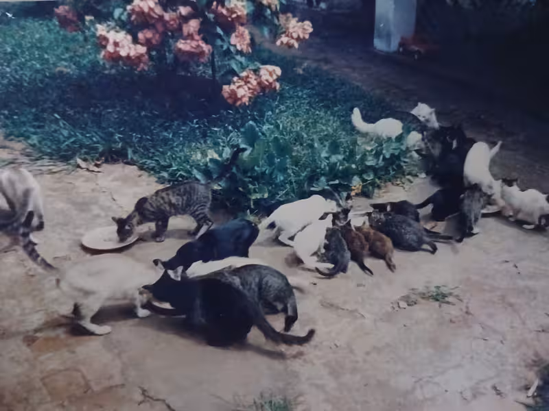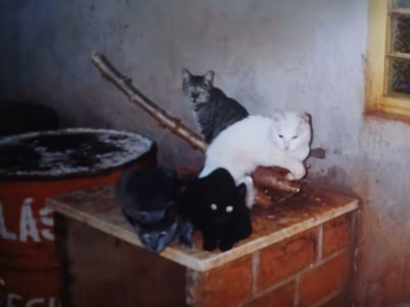 So Jessica had a friend, the second cat we got, I think she was also found by my father, her name was Maggie, and by then my parents had rented a small rural property and we started living there. I'm not very sure how it proceeded, but one day or another, my dad or my mother found abandoned kittens or abandoned puppies, or sick animals, and they started taking care of them, but all of these would stay outside of the house because that many pets would make a mess, only Jessica and Maggie had free passage to come and go.