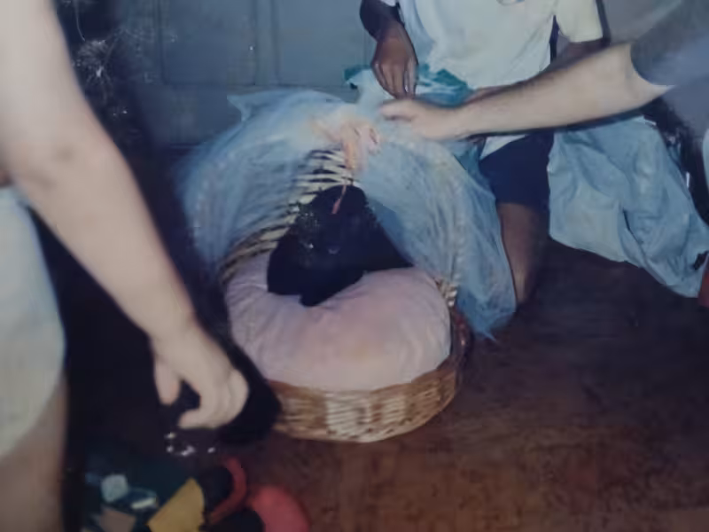 They didn't want to raise me in the capital so they moved to the countryside, and we went to live in a house my grandfather had. When I was born Jessica would sleep with me in my crib. She soon had babies of her own, and although my parents tried to keep them in a box in the closet, she would just move them back to my crib when they turned their backs because all the babies had to be together... from all the babies she raised in that crib, only one didn't leave, the big one, me.